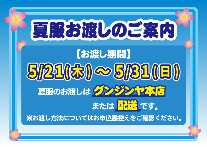2026年度 高等学校 夏服お渡しのご案内